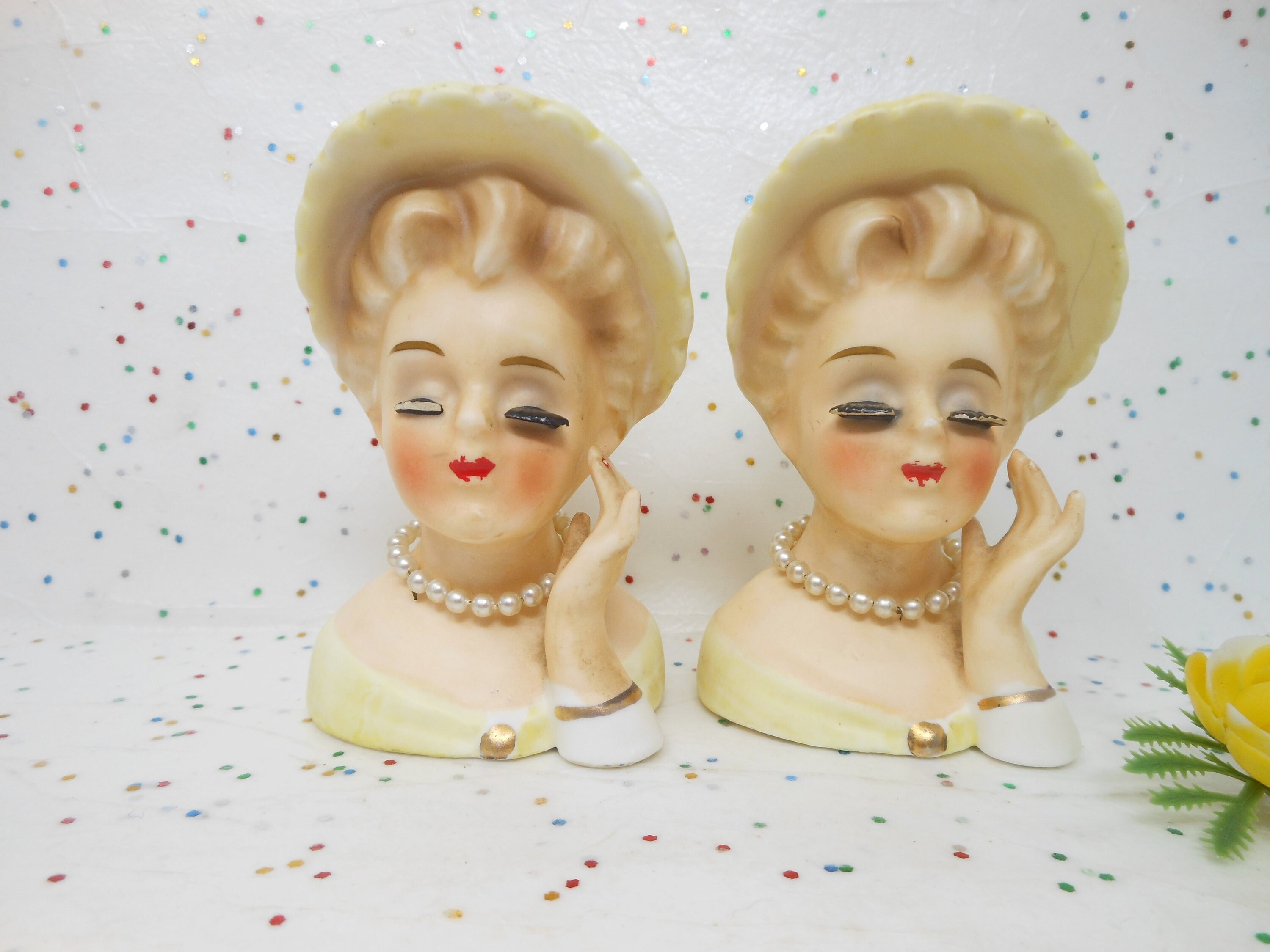 Vintage Inarco Japan E5106 Victorian Elegant Lady Planter Head Vase 1950 S Green Ebay